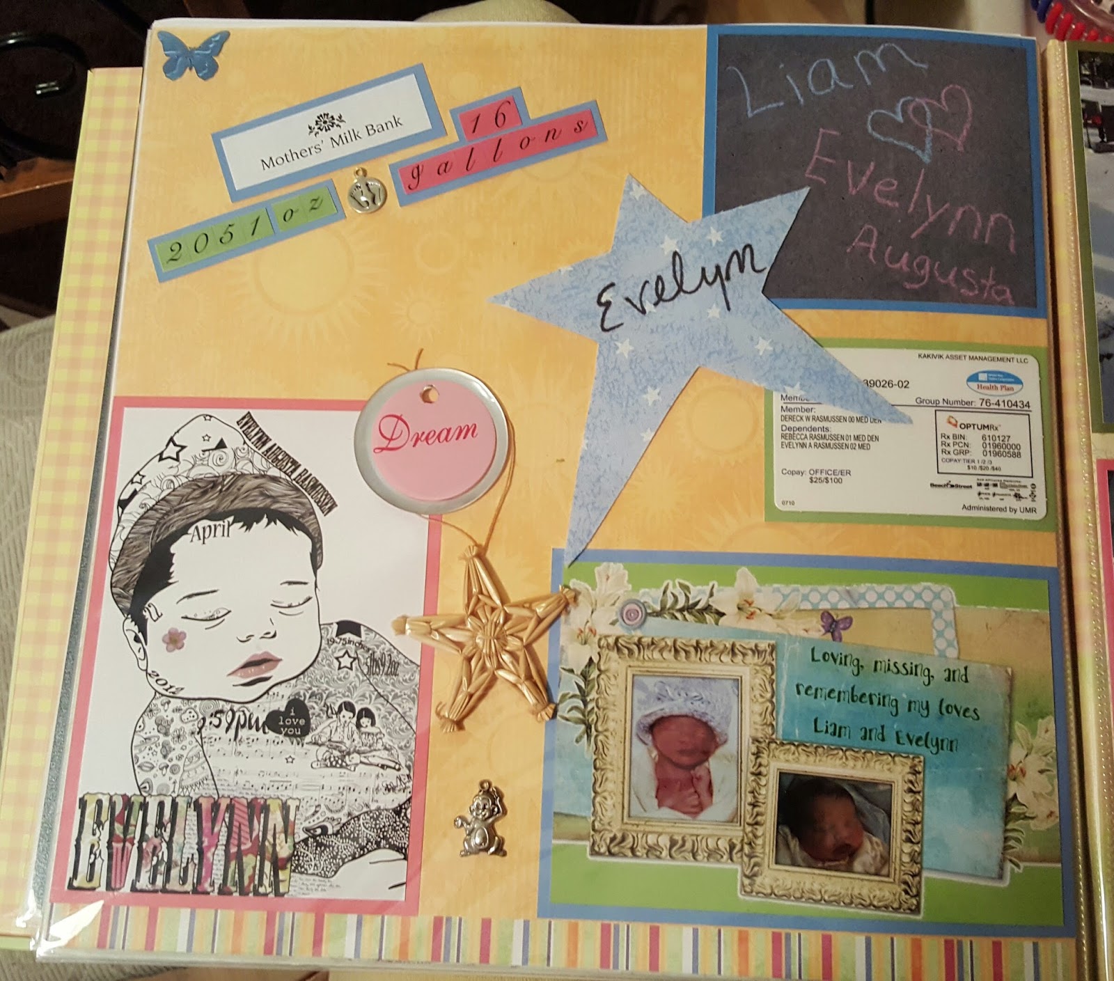 In 8 days it'll be 4 years since my sweet Evelynn was born, and 10 days since we had to say goodbye for now. I have been saying for the past almost 4 years that I need to get her scrapbook started, and of course, then finished. Back when I did Liams scrapbook it took me a little over a year to finish his. Although it was still hard to work on, the drive to have it done before Evelynn was born helped me to get it done. I don't recall exactly when I started her scrapbook, but it took me a very, very long time to get anywhere with it. So many baby stickers bought and cute scrapbook ideas that I found, once again never got used because those things don't seem to work with how this scrapbook was going to end. I even started once and ended up ripping multiple pages out, only to start over. I just wanted it to be perfect for her. When I finally started making real progress on it, I did everything from before her birth and then the funeral on. I just couldn't bring myself, until probably the last 3-6 months, to really go through her pictures from birth, and even then it was (is) still hard to look at those nicu pictures. So, like Liam's, I needed to take pictures of the whole scrapbook, just in case something were to ever happen to it, and of course to share her beautiful life with all of you.
